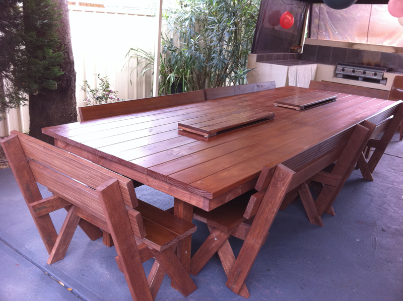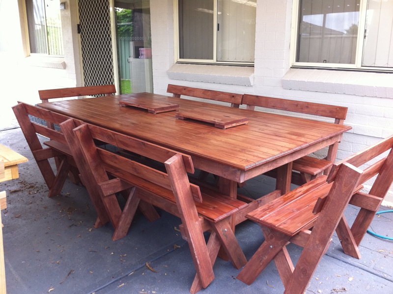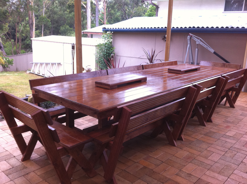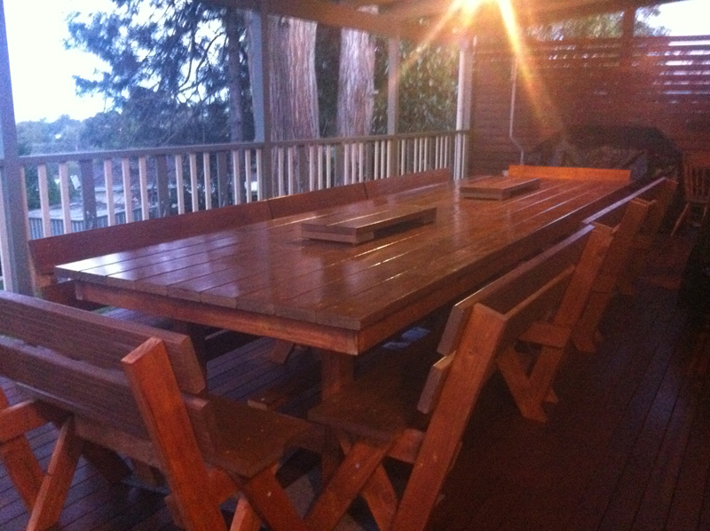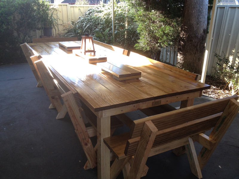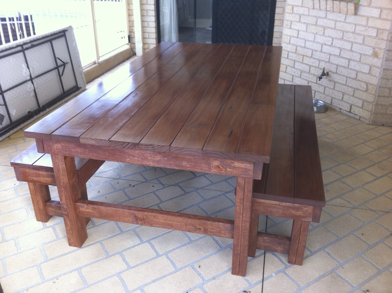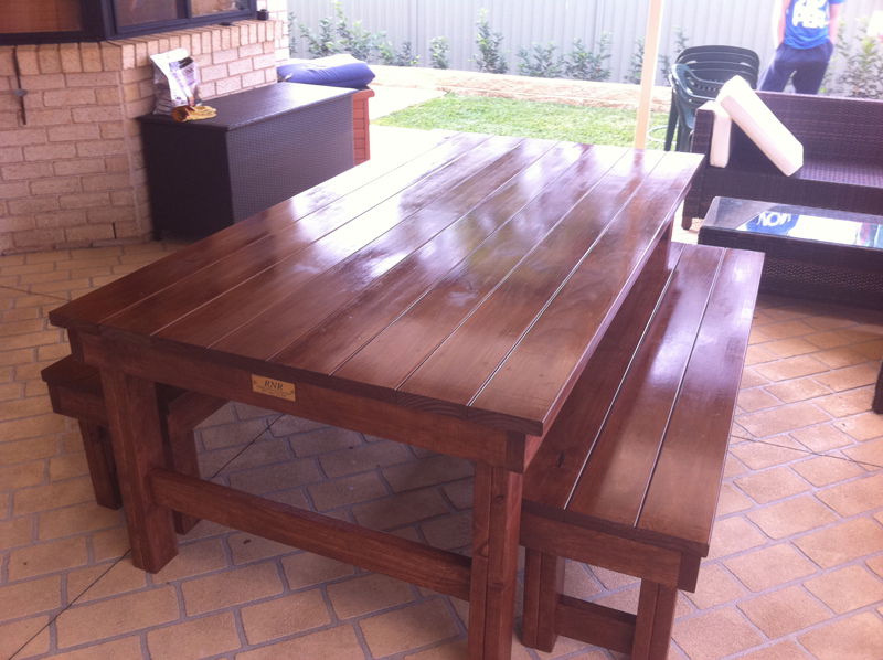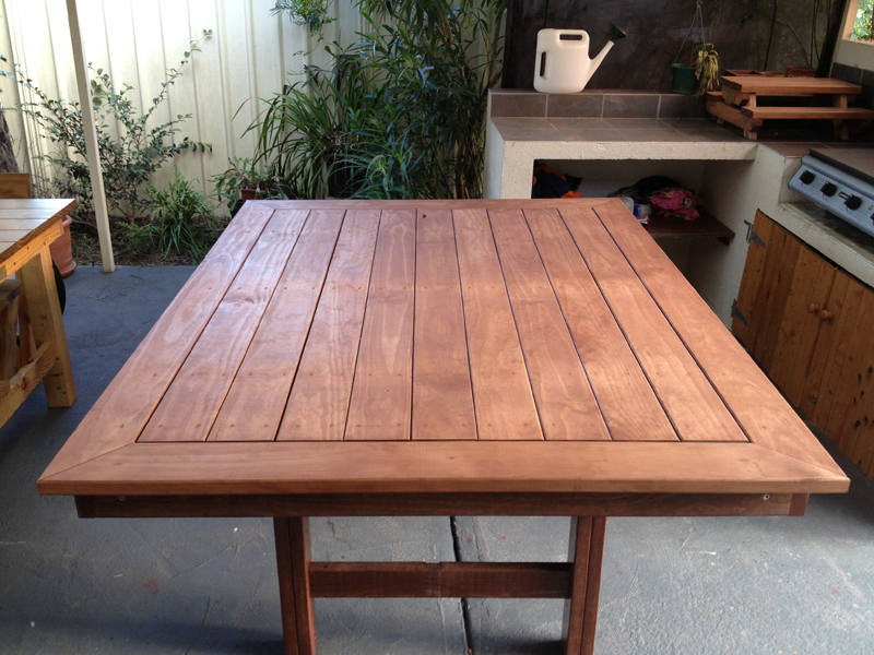 These tables are made from construction pine frame and pine decking top stained in your colour of choice. I can make any size you like, I can deliver a delivery fee may apply.
